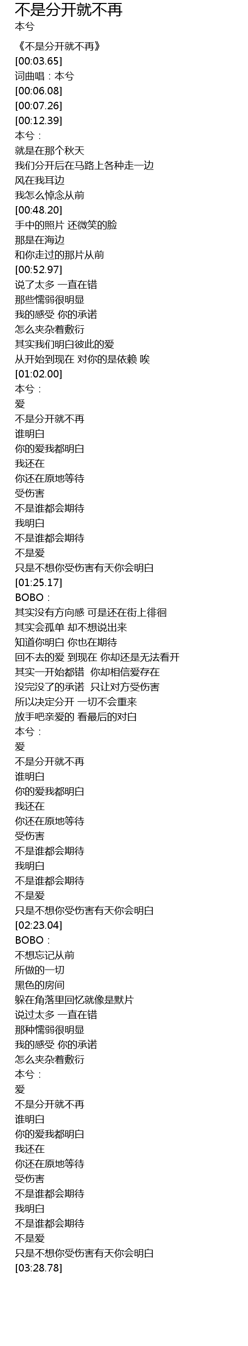 | [00:02.64] | bú shì fēn kāi jiù bù zài |