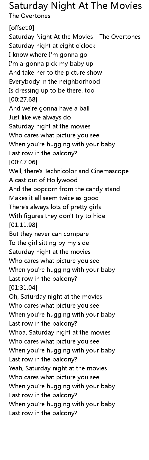[00:00.74] Saturday Night At the Movies - The Overtones