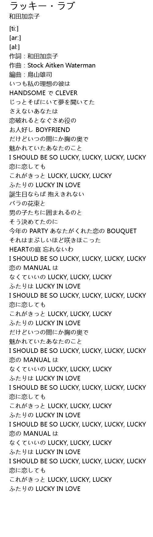 | [02:09.11] | ふたりの LUCKY IN LOVE |