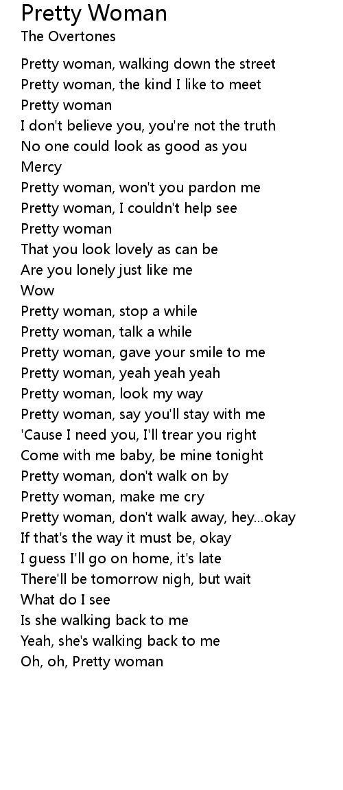 Pretty woman, don't walk away, hey...okay