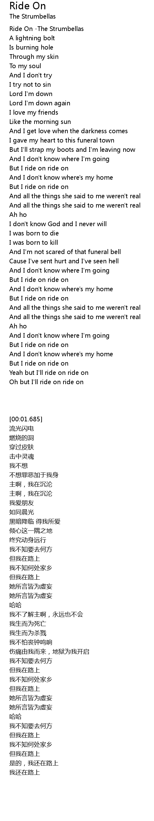 Oh but I'll ride on ride on |