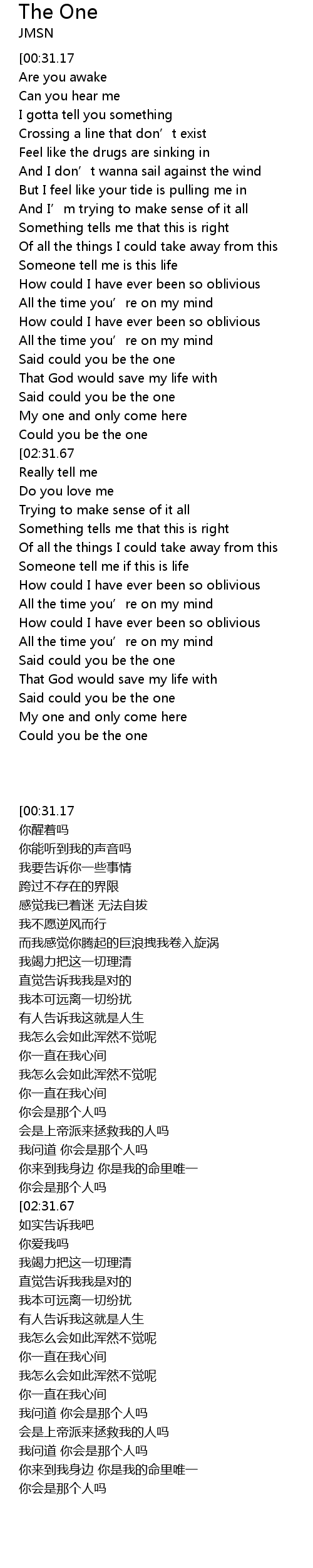 | [03:10.23] | Said could you be the one |