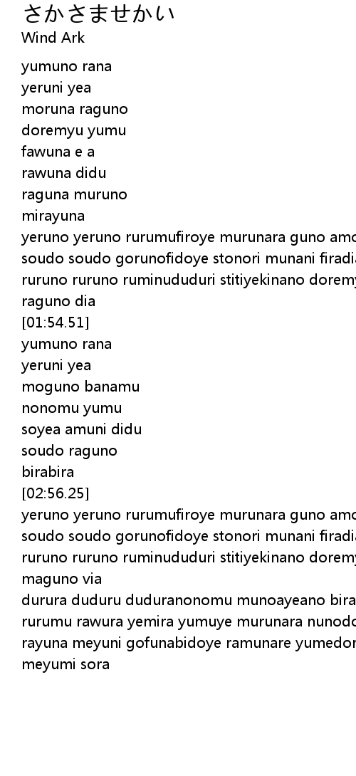 | [03:31.50] | durura duduru duduranonomu munoayeano birayumu |