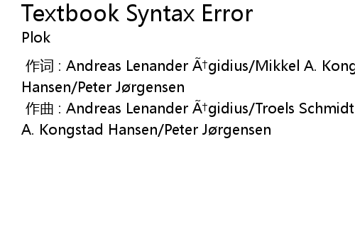 | [00:00.000] | 作曲 : Andreas Lenander Ægidius/Troels Schmidt Thinesen/Mikkel A. Kongstad Hansen/Peter Jørgensen |