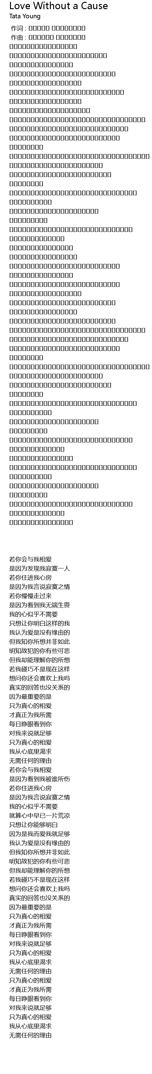 Love Without a Cause Lyrics