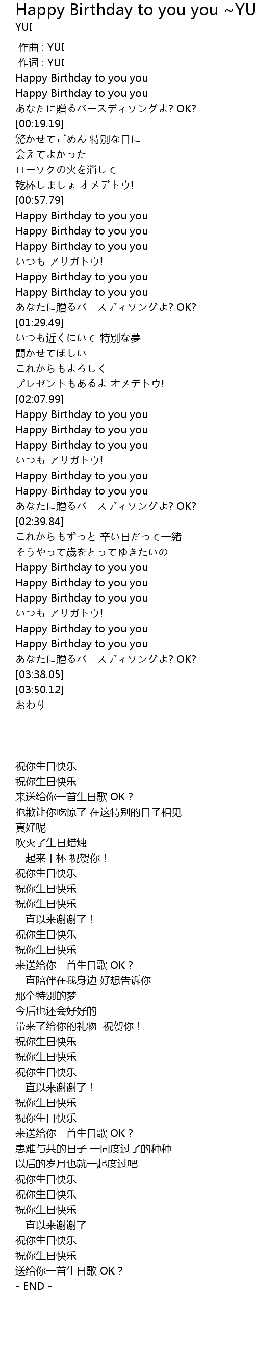 | [00:00.00] | 作曲 : YUI |
