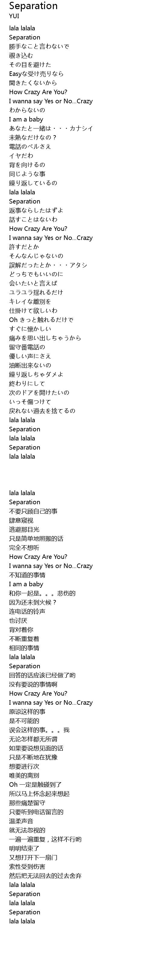 | [01:18.90] | I wanna say Yes or No...Crazy |