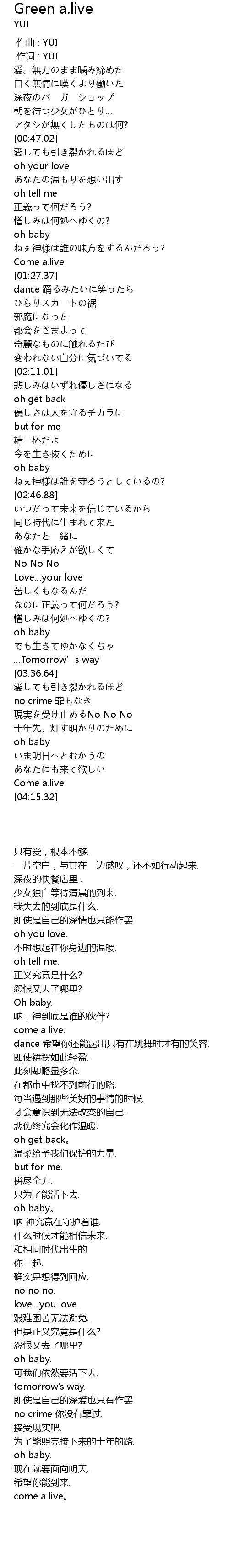 | [00:00.00] | 作曲 : YUI |