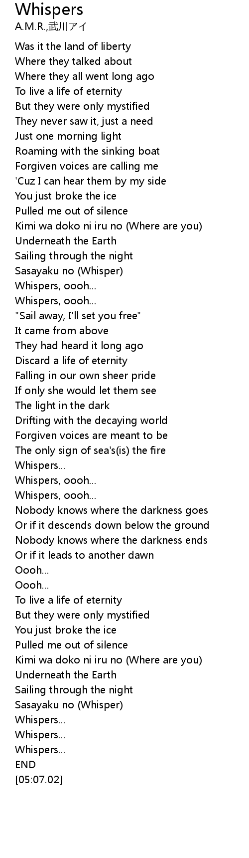 | [03:49.38] | Kimi wa doko ni iru no (Where are you) |
