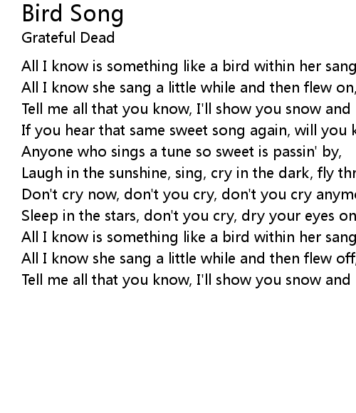 All I know she sang a little while and then flew on, |