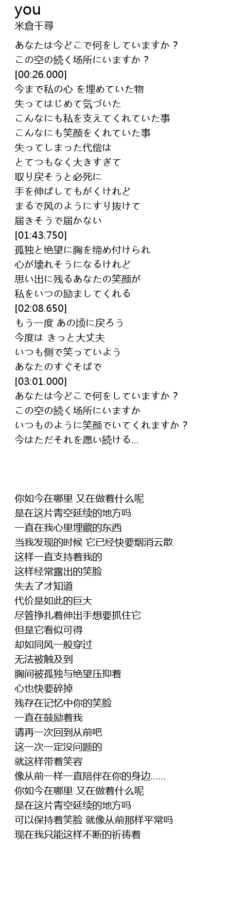 | [03:15.179] | いつものように笑颜でいてくれますか? |