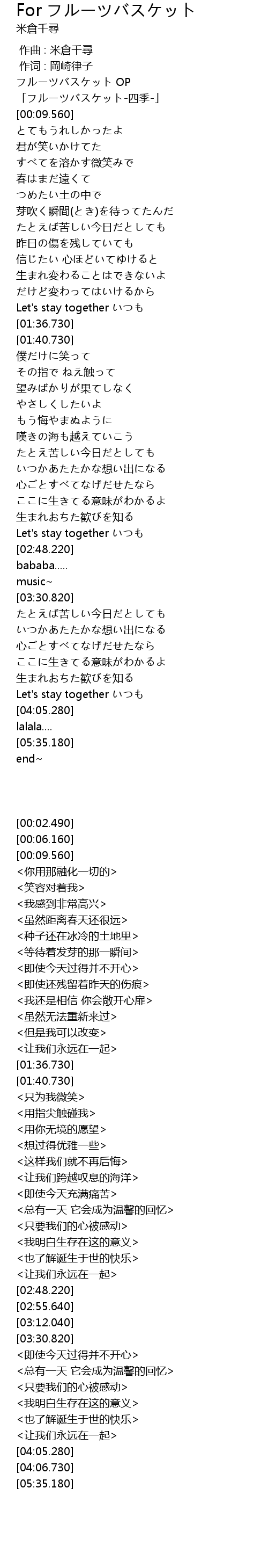 | [00:06.160] | 「フルーツバスケット-四季-」 |