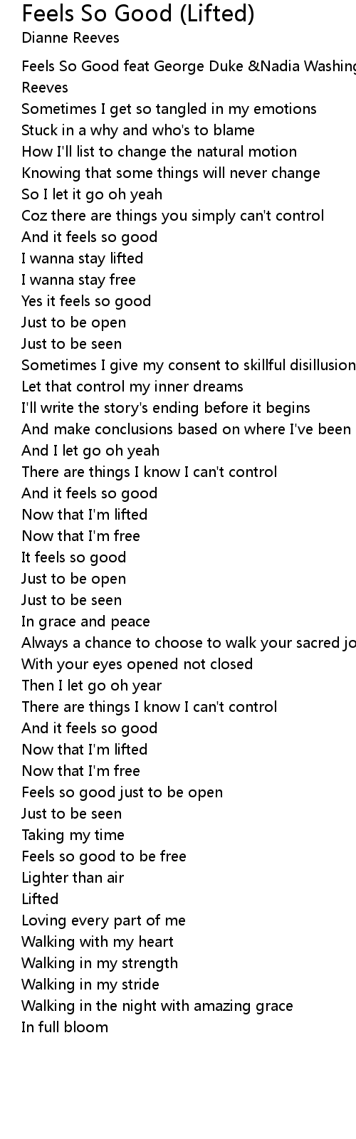 | [00:00.750] | Feels So Good feat George Duke Nadia Washington Lifted Dianne Reeves |