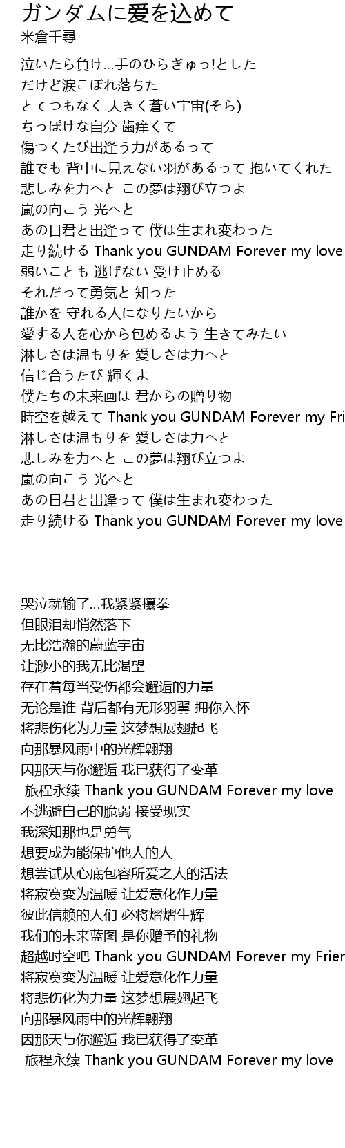 | [03:28.89] | zou xu Thank you GUNDAM Forever my love |