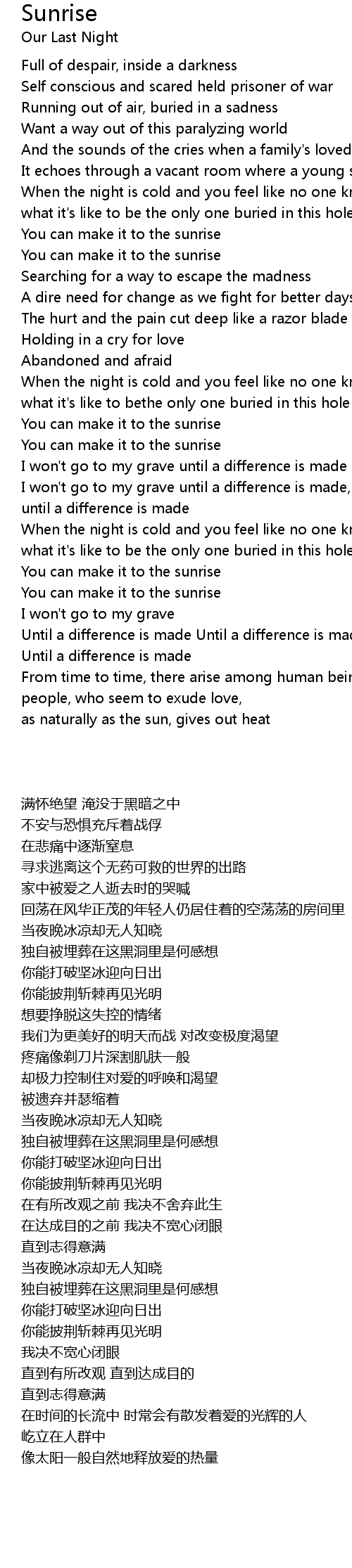 When the night is cold and you feel like no one knows |