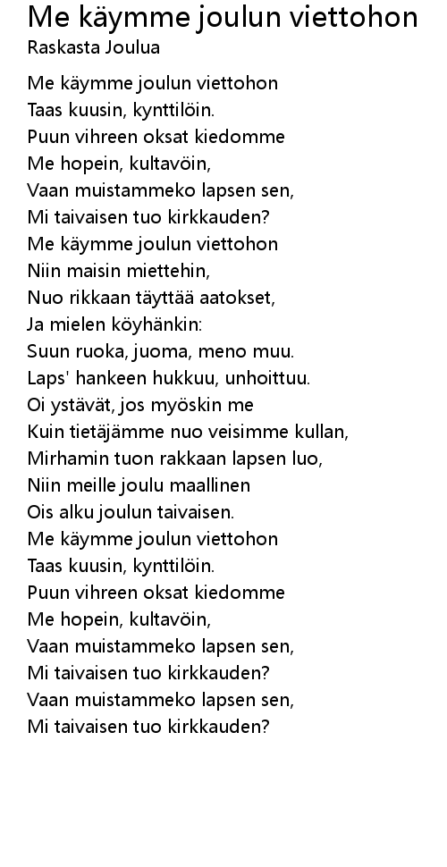 | [02:17.00] | Ois alku joulun taivaisen. |