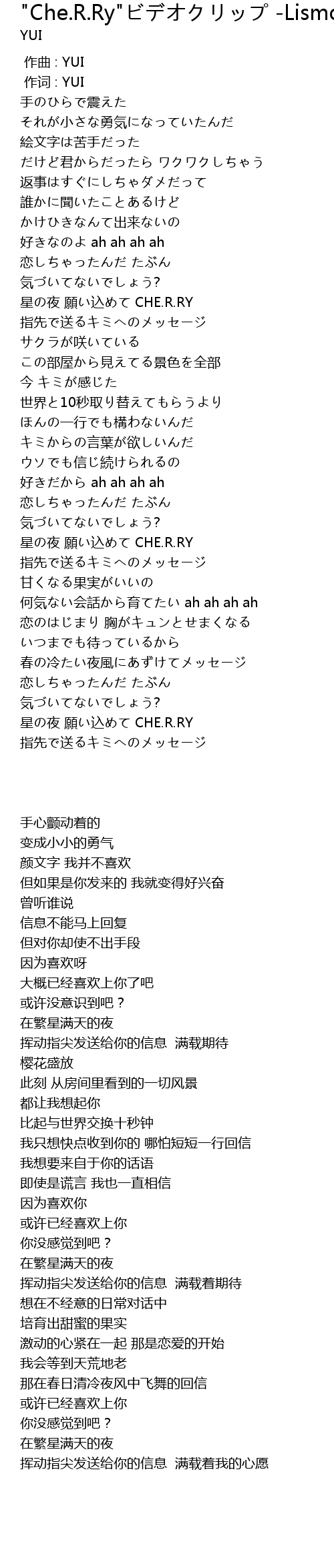 | [01:53.650] | 星の夜 願い込めて CHE.R.RY |