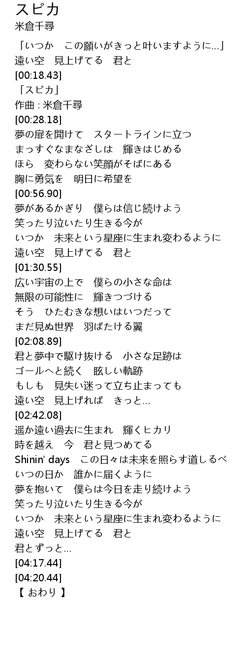 | [00:50.93] | 胸に勇気を 明日に希望を |