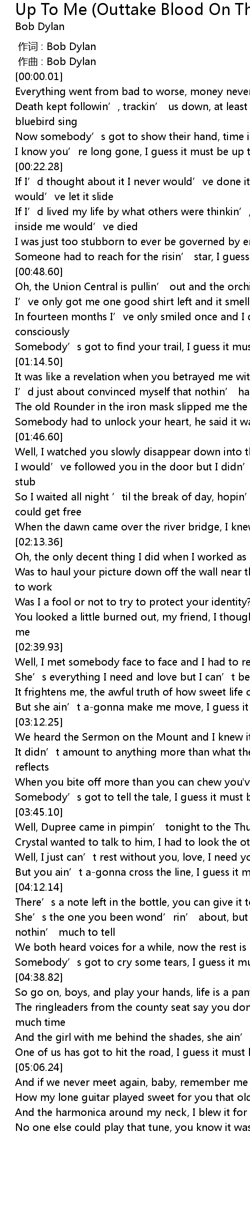 | Song | Up To Me (Outtake Blood On The Tracks) |