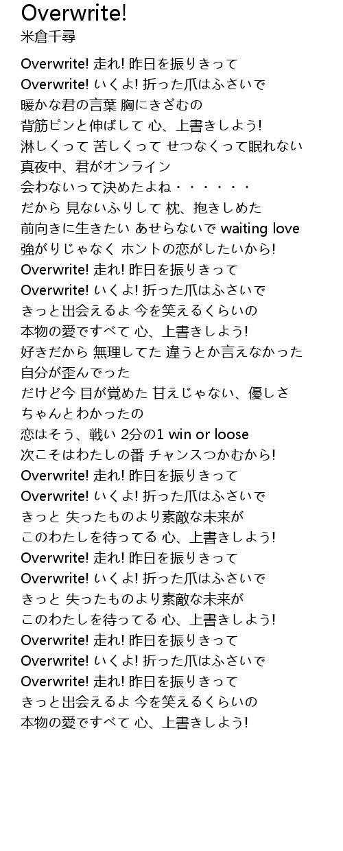 | Overwrite! いくよ! 折った爪はふさいで | |
