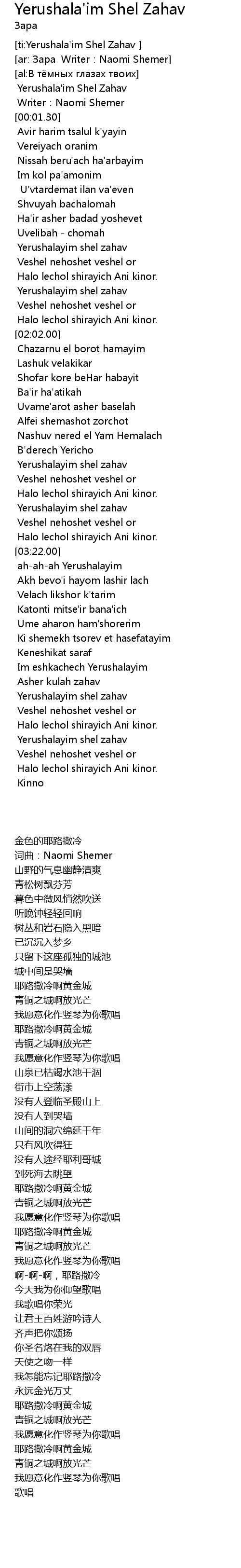 | [03:22.74] | ah-ah-ah Yerushalayim |