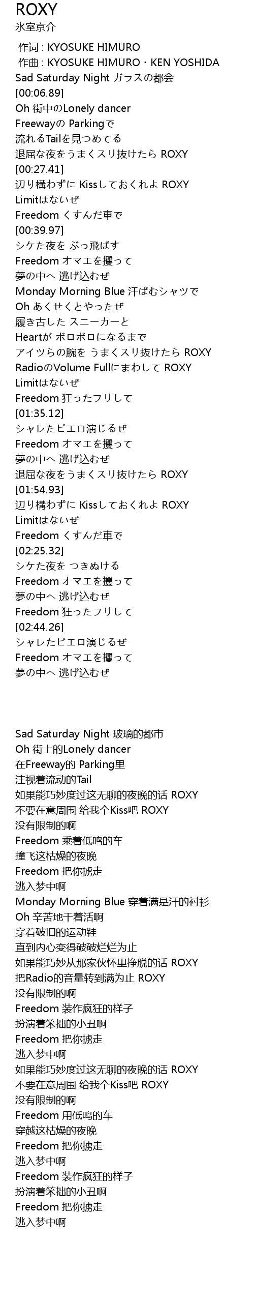 | [00:00.000] | zuò cí : KYOSUKE HIMURO |