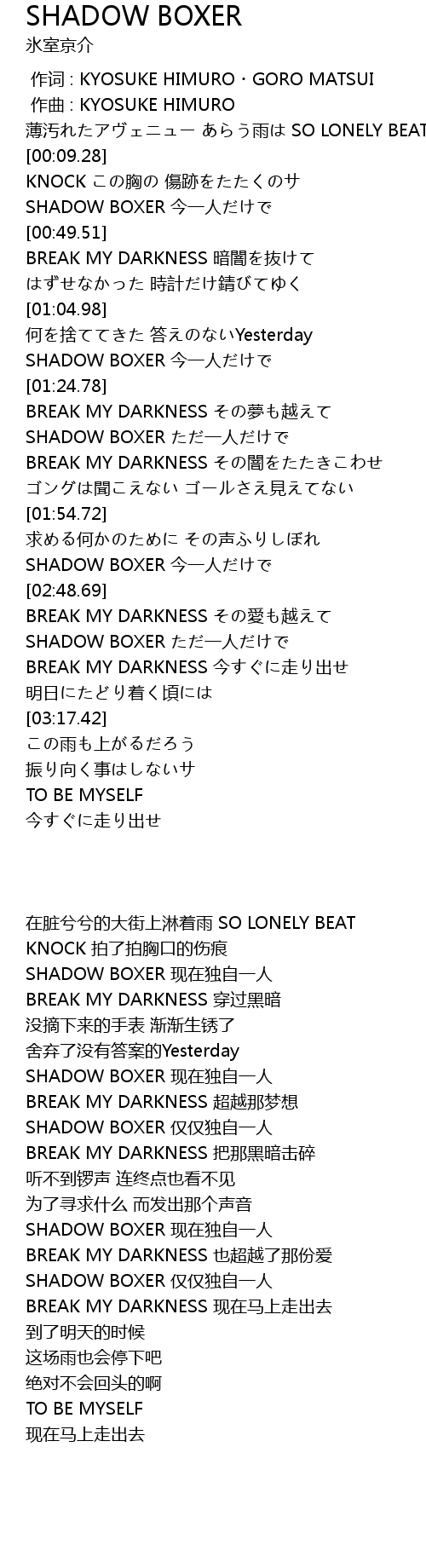 | [03:04.53] | SHADOW BOXER ただ一人だけで |