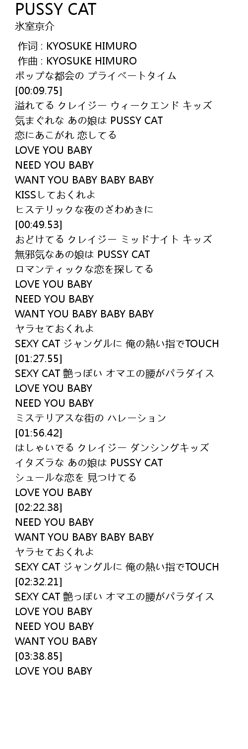 | [00:32.60] | 気まぐれな あの娘は PUSSY CAT |