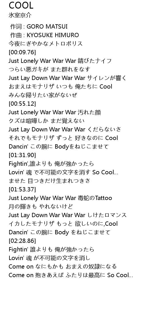 | [00:46.36] | おまえはモナリザ いつも 俺たちに Cool |