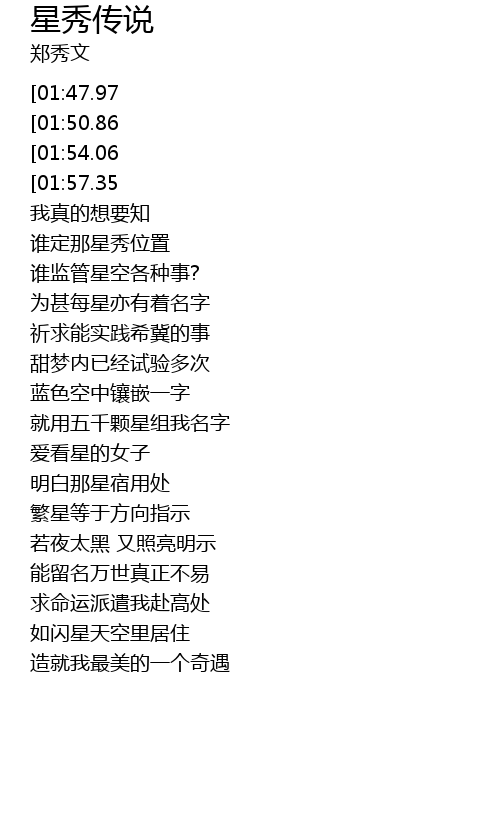 | [00:41.60] | shuí dìng nà xīng xiù wèi zhì |