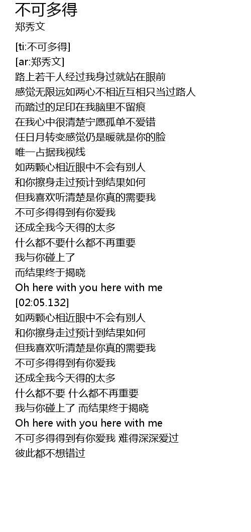 | [02:41.383] | bù kě duō de dé dào yǒu nǐ ài wǒ |