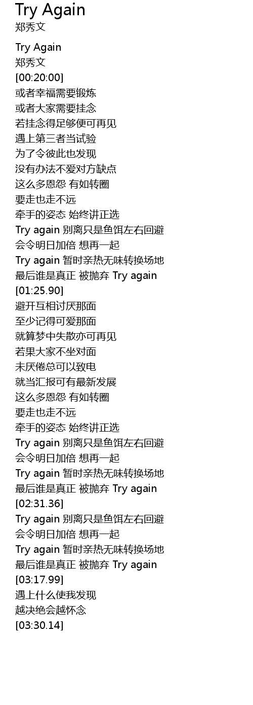 | [02:46.68] | Try again bié lí zhǐ shì yú ěr zuǒ yòu huí bì |