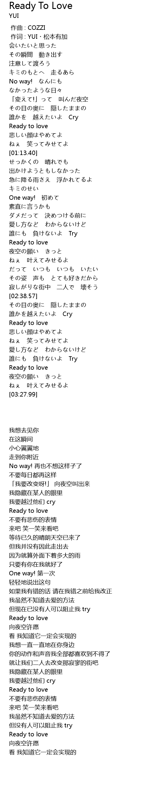 | [00:01.00] | 作词 : YUI・松本有加 |
