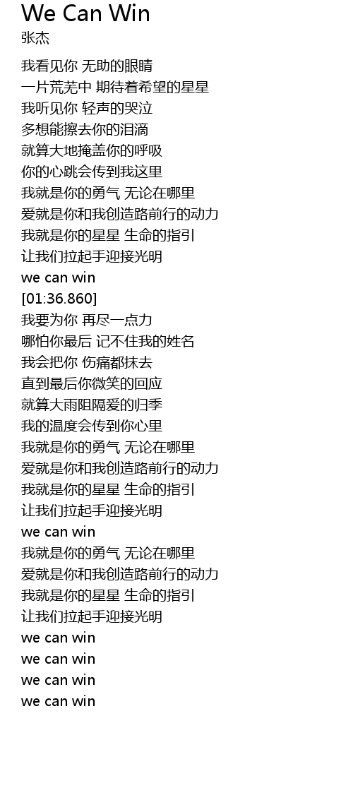 | [02:53.630] | ài jiù shì nǐ hé wǒ chuàng zào lù qián xíng de dòng lì |
