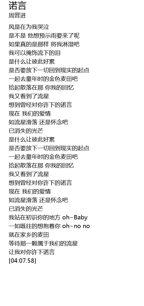 | [01:00.27] | 想到曾经对你许下的诺言 |