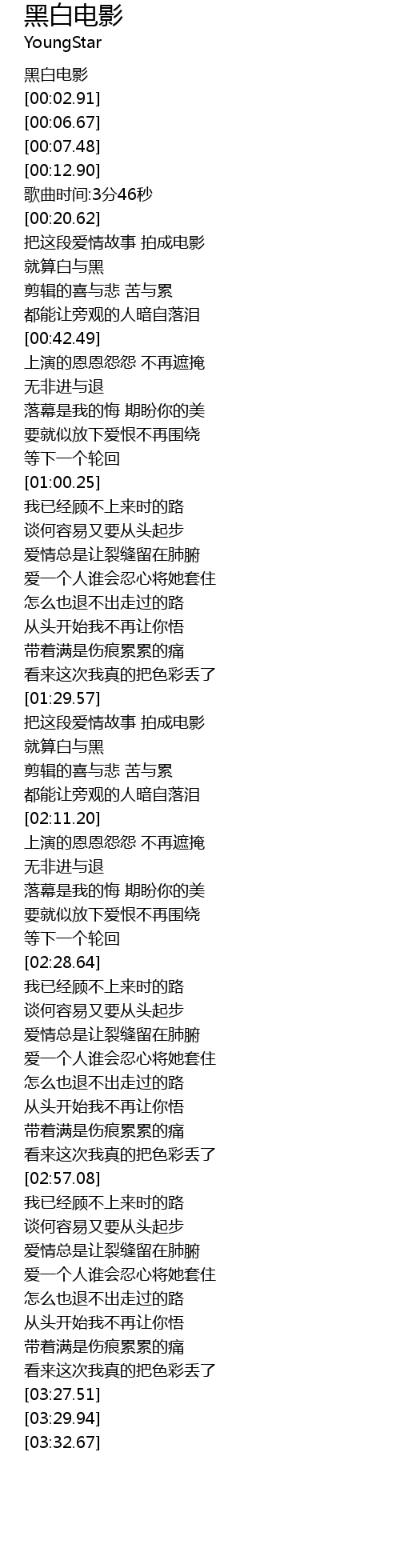 | [00:14.55] | 歌曲时间:3分46秒 |