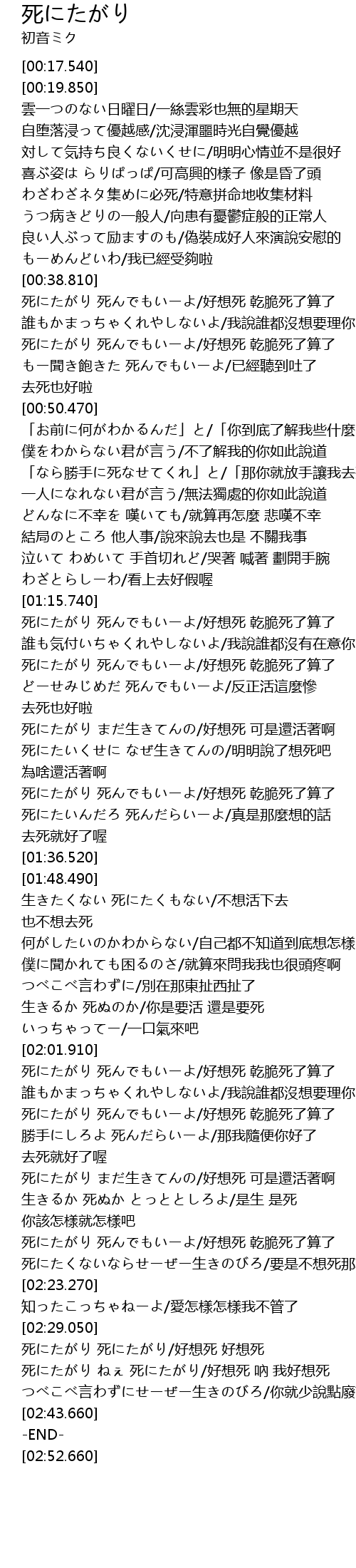 | [01:51.490] | 生きたくない 死にたくもない/不想活下去 也不想去死 |