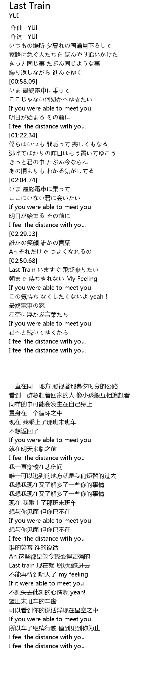 | [03:12.72] | Last Train いますぐ 飛び乗りたい |