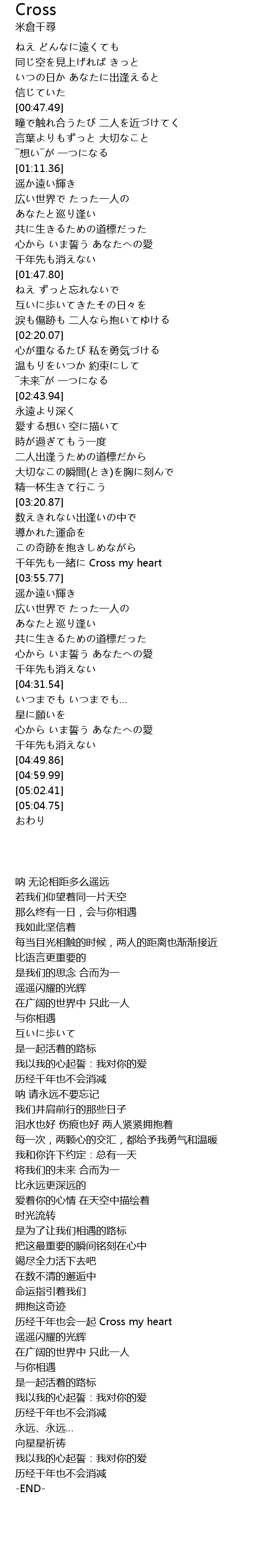 | [03:46.94] | 千年先も一緒に Cross my heart |