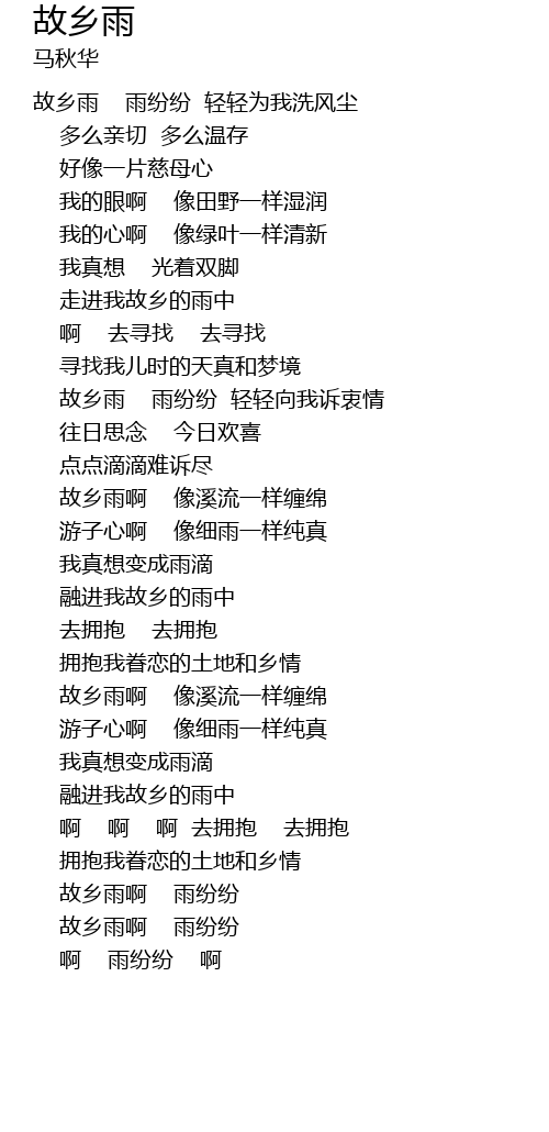 | 故乡雨 雨纷纷 轻轻向我诉衷情 | |