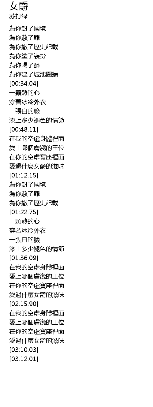 | [01:42.12] | 愛上哪個膚淺的王位 |