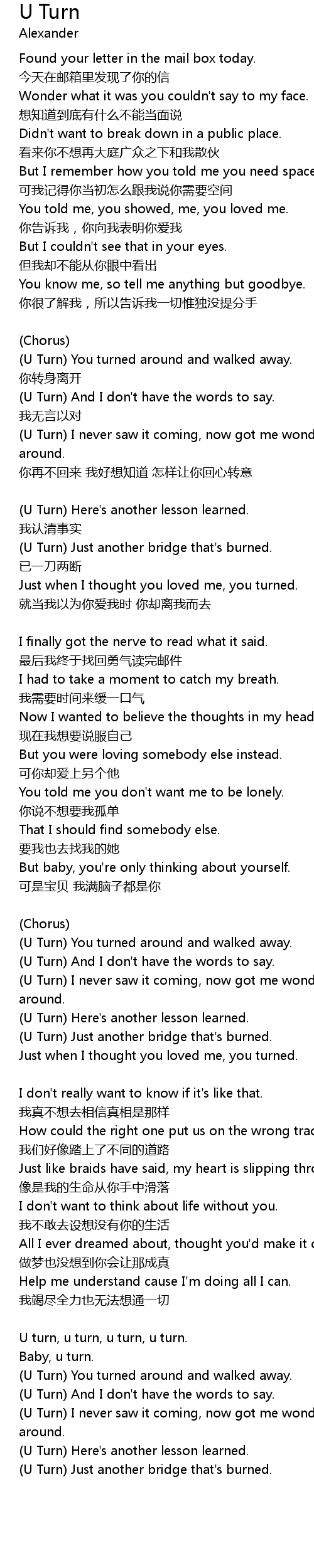 | U Turn And I don' t have the words to say. | |