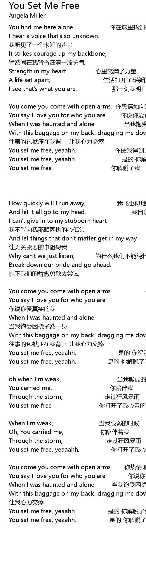| You set me free 你打开了我心灵的枷锁 | |
