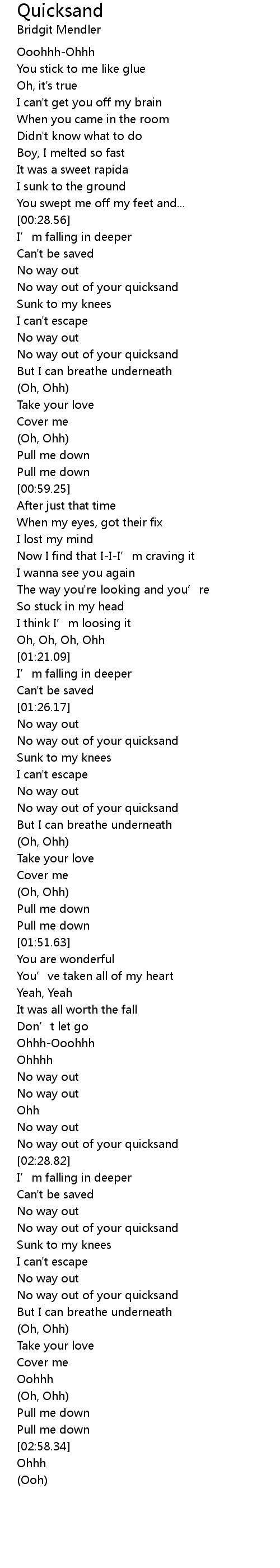 | [02:34.35] | No way out of your quicksand |
