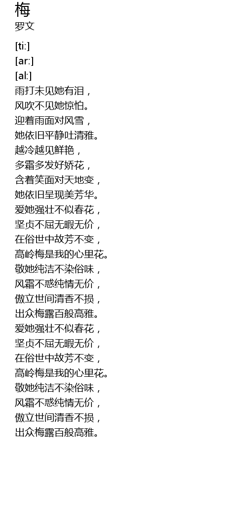 | [01:35.40] | 高岭梅是我的心里花。 |
