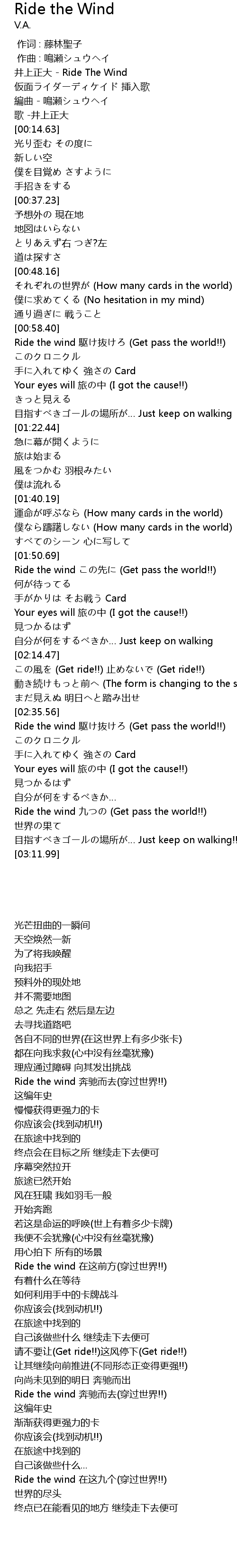 | [02:59.90] | Ride the wind 九つの (Get pass the world!!) |