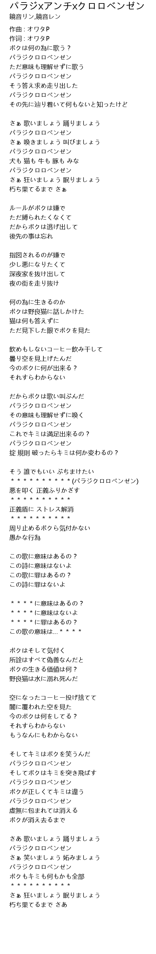 作词 : オワタP |