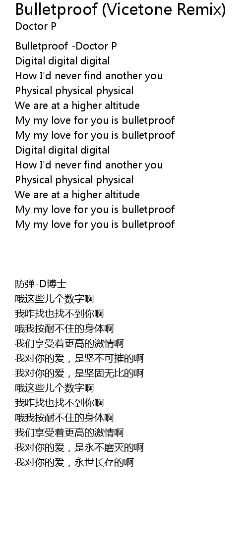 | [00:45.99] | My my love for you is bulletproof |