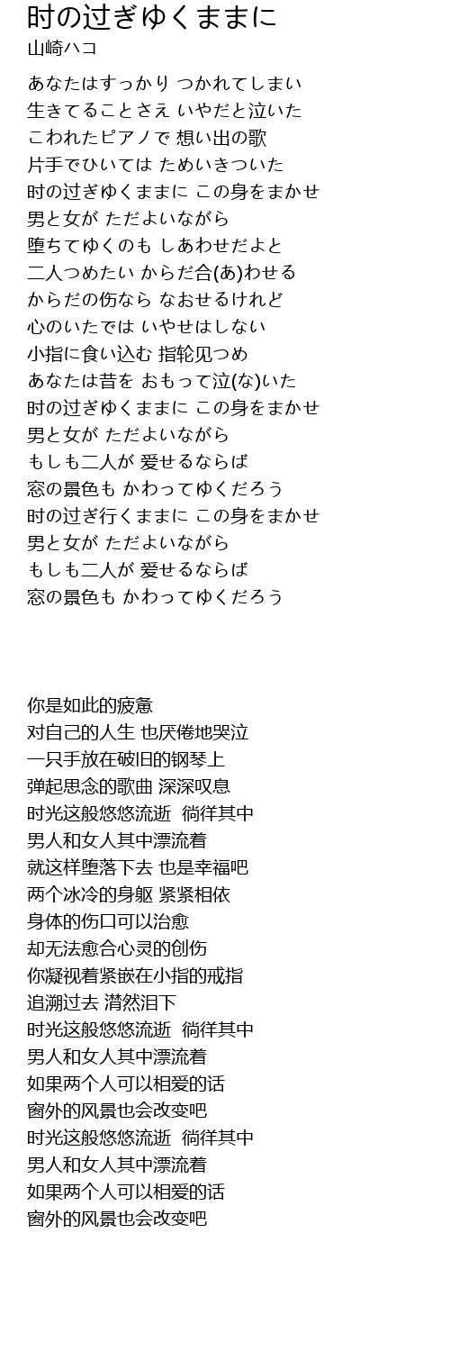 | [02:16.56] | 时の过ぎゆくままに この身をまかせ |