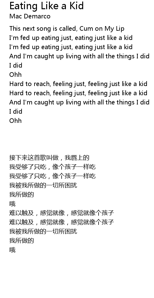 | [00:41.365] | I'm fed up eating just, eating just like a kid |